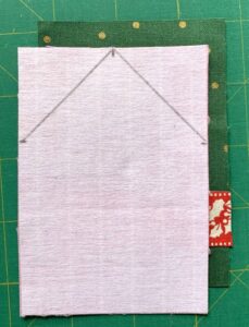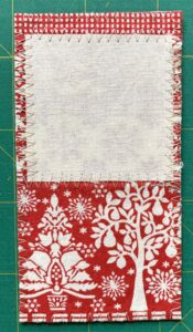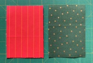 Start with two pieces of fabric, measuring about 3 x 4 1/2 inches.
