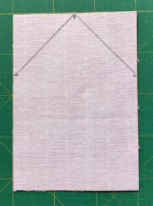 Use a pencil and mark the centre point at the top, as shown below. Also mark 1 1/2 inches down each side (from the top), and then join those points to make the angled top.