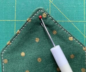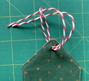 Now, it’s not a tag unless we can tie it to a gift, so use your unpicker / seam ripper tool to cut a small hole through all layers of fabric near the top of the point.