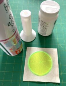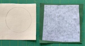 Layer the two fabrics, and cut out the circle shape from both in the one go.