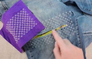 The second part of this visible mending with sashiko class shows how to use this stitching to fix a hole in a pair of jeans. They cover all sorts of handy tips and tricks for managing to sew in more confined spaces (think tight jeans legs), and how to audition fabrics that you want to show off, for behind the hole you’re mending.