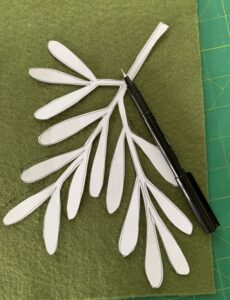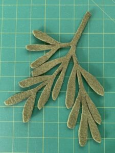 We traced and cut four of these shapes from our felt. Do as many as you like to make your sprig look realistic.