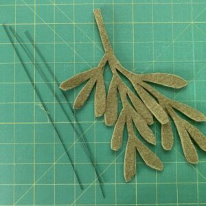We used this florist’s wire to give our felt some body. We used three lengths per felt shape, plus a few for the berries and hanging loop.