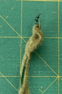 Fold the end over on itself to keep it secure in the felt, and so it doesn’t poke you.