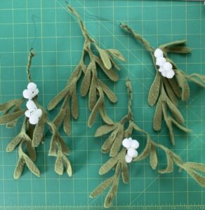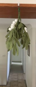 Today we have a tutorial and pattern for you to make your own Mistletoe Sprig to hang in your house this Christmas. I made this easy felt sprig last year, as where we live, there is mistletoe, but it’s usually very high up in the gum trees, and there’s no way I was climbing just to get some to hang in our house.