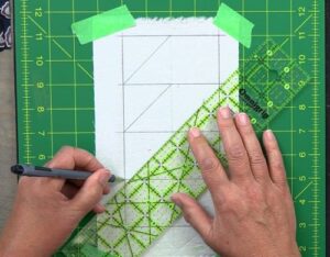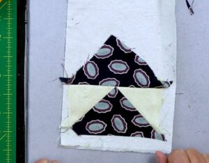 Another method to use silks in your quilt making, is to work with a fabric foundation when piecing. Like paper piecing, this gives very accurate piecing, but using a light-weight cotton muslin foundation provides the stability and support the silk needs, and you can leave it in. As Julia says, “paper piecing is no good – the silk will not love you ripping the paper out.”