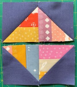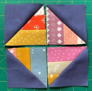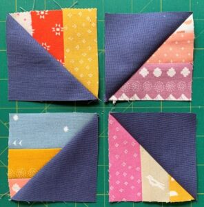 * The four half square triangle offcuts from your Strippy cushion project, when you snowballed the corners.