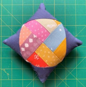 I hope you’ve had a good week, and that you found time to make our Strippy Quilted Pillow Cover from last month, as today we’re using the offcuts from that project to make our Strippy Scrappy Pincushion. This pincushion pattern is quick and super easy, and is a good one to have on hand for any stash busting sewing, from any project that has you snowballing corners.