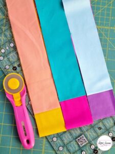Instead of cutting individual squares, sew long fabric strips together first, then cross cut them into segments. This speeds up the process and reduces cutting errors, and also ensures that your strip sets will go together perfectly, as they all have the same seam allowance.