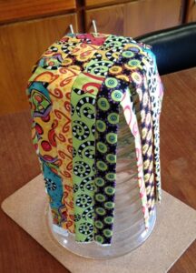 Use the strip to measure how long it needs to be, add a ¼ inch overlap and cut. As pictured, overlap the raw ends and sew together to make a circle of fabric.