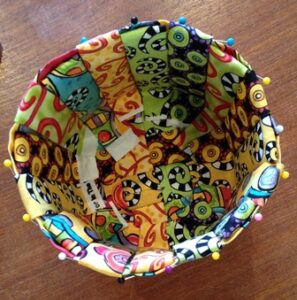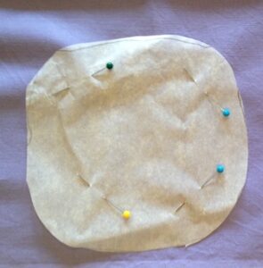 Trace around the base of your basket and cut a template to match, for the lining base. Be sure to include a seam allowance too.