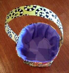 If using fusible webbing, use your iron again to carefully fuse the strip ends to the inside of the basket.