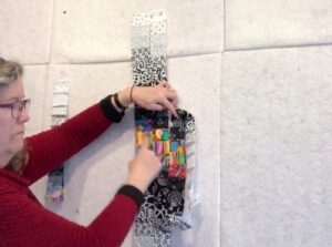 I took Cindy Grisdela’s “Fire and Ice Bargello Wall Hanging” class, and it’s a quick and easy one too – she explains the steps clearly, and there’s plenty of written notes and photos as well, to guide you through this process of making bargello quilts, and this wall hanging quilt in particular.