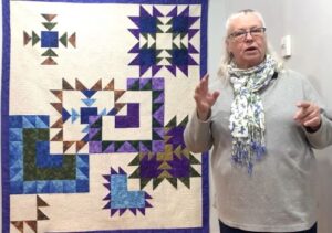 Included with this class is the full pattern too for Sue’s contemporary “Dancing Bear Paws” quilt, and aside from all of the different block patterns, there is a good discussion on how to choose your fabrics for a quilt like this, to create a cohesive look for your own quilt.