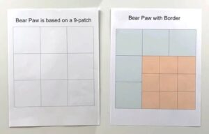 Some of the many variations are fun too – try a Bear Paw quilt block with a border –