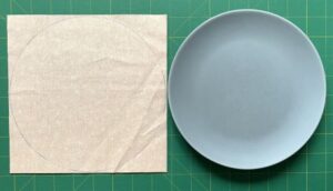 Find what fits – if you have a round template, great. If not, find a bread and butter plate or bowl to use as a template instead.