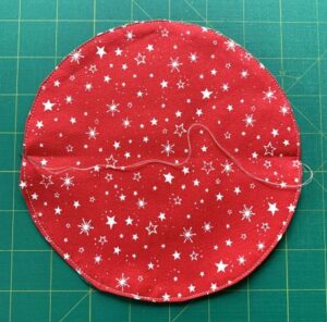 Sew around the edge with a ¼ inch seam, and making sure to leave a 3-4 inch gap, to turn your fabric through.