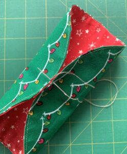 Draw the two halfway points together and take a couple of small stitches over the top to hold the points together.
