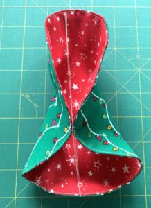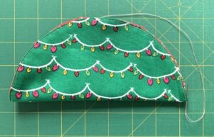 Now fold in half again, the opposite way, with your stitched points at the top of the semicircle arc.