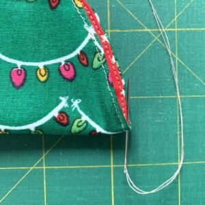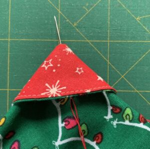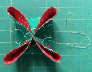 Bring those points together (you’ll have the first stitched points in the middle), and take a few stitches over the top to hold them together.