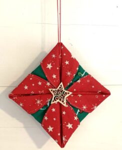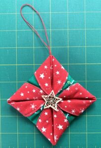 I hope you’ve had a great week this week. As it’s still July, and we’ve been doing our Christmas in July launch for this year’s Quilter’s Advent Calendar program, I thought it would be fun to share this Folded Fabric Ornament for you to make.