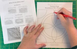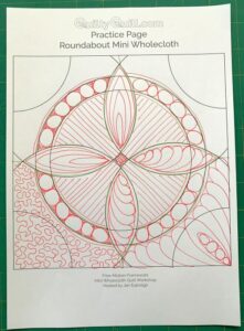 There’s a comprehensive 10 page downloadable handout included, which also includes a practice sheet for drawing your design plans, and a full size template for the 15 inch square mini wholecloth practice piece.