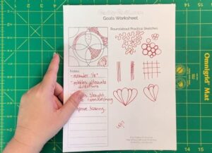You are encouraged to use the Goals Worksheet too, to plan out some ideas for potential designs, and things you want to learn / practice / achieve through quilting this design.  She’s right – it is good that have something like that to refer back to afterwards too, once you can see what worked, and what didn’t so much, and look at what you learned.