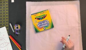 Once the design step was finished, Jen demo’ed marking the outlines onto your fabric.  I learnt something here too – I didn’t know you can use the Crayola washable markers for this, but Jen insisted they washed out no problem, so I’m off to find a pack tomorrow!