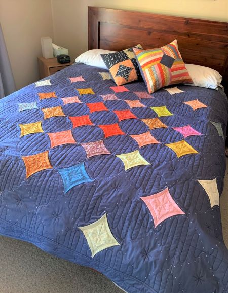 Grab a layer cake of 10 inch squares and some contrasting yardage and get ready to make your very own constellation quilt.