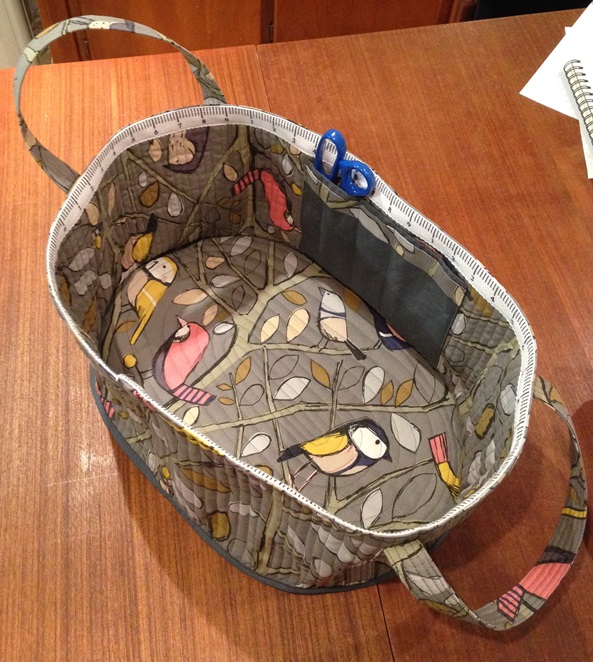 It is easy to make, and both wide and deep enough to store all sorts of bits and pieces that you need to keep together. The inner pocket can be personalised to suit your requirements, and you may like to add a fabric measuring tape as we did too!