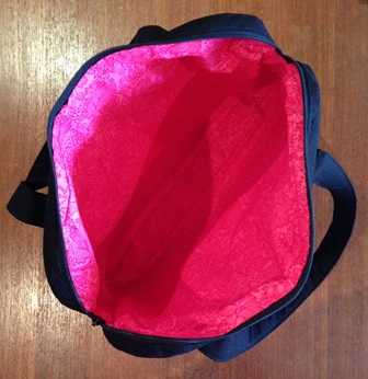 Featuring an oh-so-stylish reverse applique front panel, this cutaway section gives you a great chance for a statement splash of colour! This bag is fully lined and also has an inset zippered pocket on the back.
