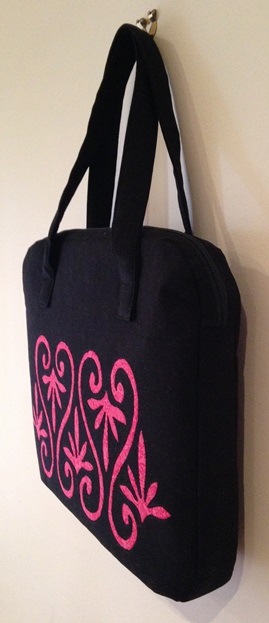 This slimline over-the-arm zippered satchel is the perfect size for carrying paperwork or books, or small to medium sized electronic devices.
