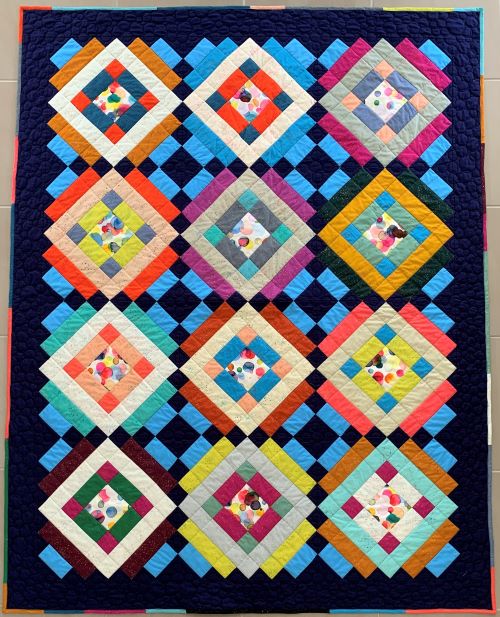 Grab a fun jelly roll and some contrasting yardage and get set to make our single bed sized “Effervescence” quilt.