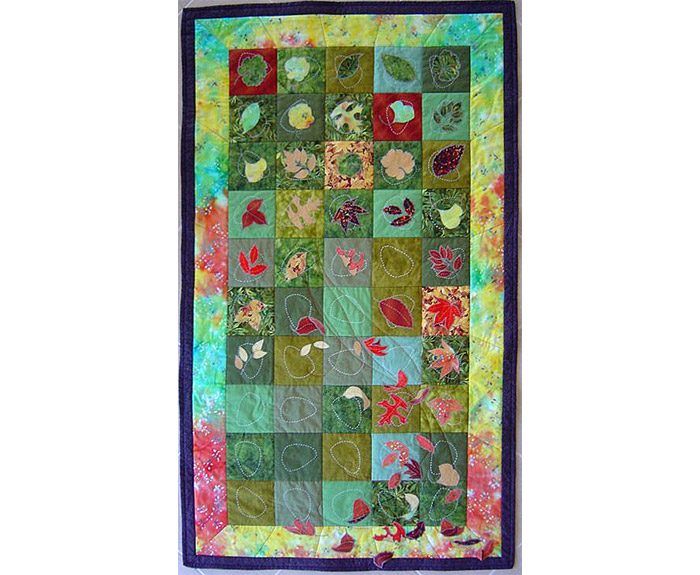 This wall quit blends applique and stitching with some 3D effects to create a stunning design you will be proud to feature on your wall. Green leaves at the top gradually turn to fall colours and start to drop with the Autumn winds swirling them to the bottom.