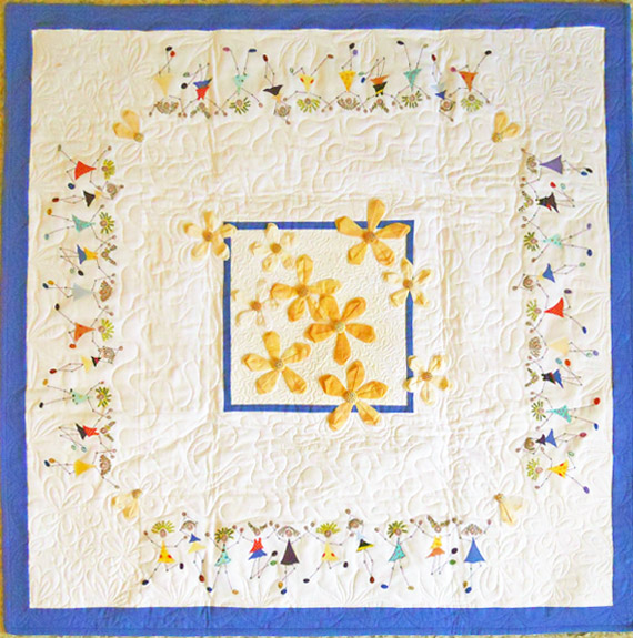 This gorgeous small quilt is guaranteed to bring a smile to your face! With a border of stitched and appliqued dancing Flutterbye girls, and a striking centrepiece of 3D flowers, this quilt will become a much-admired favourite.
