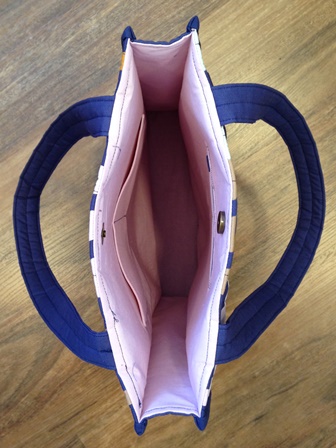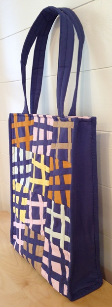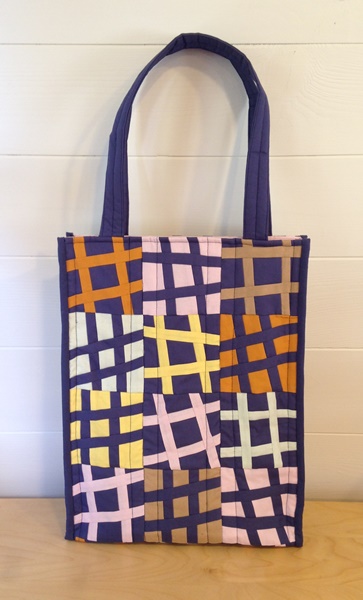 What fun! Try some simple modern improv piecing to make the outer fabric for this great mid-sized quilted tote.
