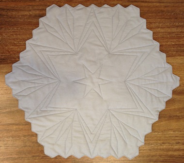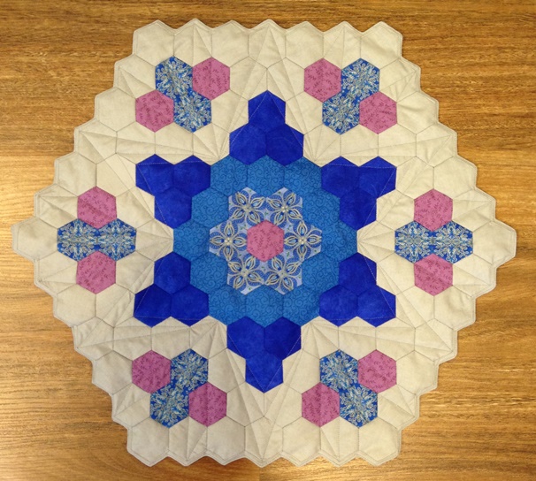 Our table topper has a diameter of 22½ inches, using 1 inch hexies.