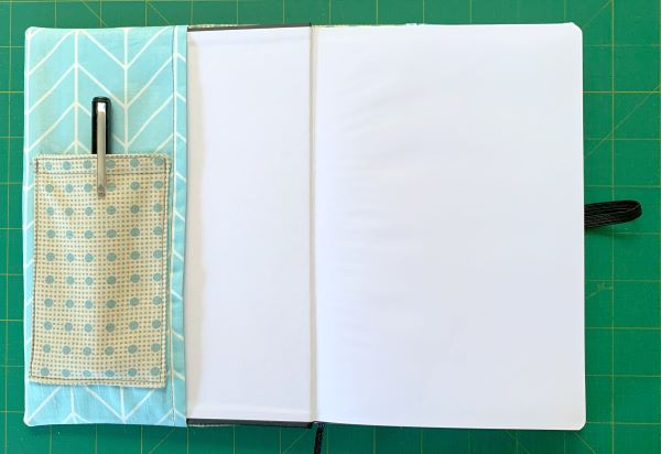 Our cover was made to fit a notebook measuring 8 ¼ inches high, and 11 ½ inches from cover to cover.